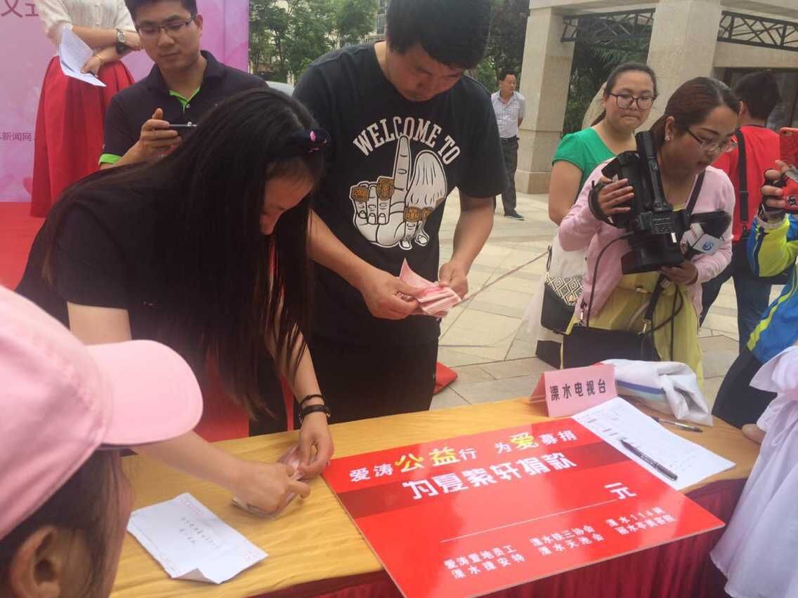 2015年6月7日,高考第一天,這是對莘莘學子三年來努力付出具有重要意義的一天;同一天,除了牽動人心的高考,一場愛心捐款活動也在溧水溫情上演。新實小學六(3)班夏紫軒同學因白血病住進了醫(yī)院,高額的醫(yī)療費用讓這個原本收入不高的家庭雪上加霜。得知消息后,為了幫助夏紫軒同學度過難關,與病魔堅強抗爭,愛濤置地公司積極號召社會愛心人士,聯(lián)合置地公司全體員工、鐵人三項運動協(xié)會、新實小學學生家長、溧水各大主流媒體及天岳城的新老業(yè)主,一同在天岳城售樓處前為夏紫軒同學舉辦愛心募捐活動。